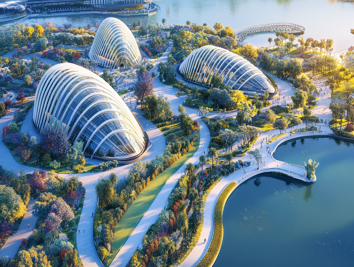 마리나 베이 인근에 위치한 가든스 바이 더 베이는 미래지향적인 정원으로 유명하다. 슈퍼트리 그로브와 두 개의 돔형 온실인 플라워 돔과 클라우드 포레스트는 자연과 기술의 조화를 보여준다. 특히 야간에는 슈퍼트리 쇼가 진행되어 환상적인 분위기를 자아낸다.